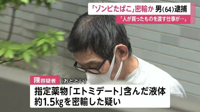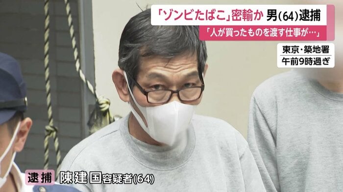 陳建国容疑者は19日、マレーシアから指定薬物「エトミデート」を含んだ液体約1.5キロを密輸した疑いが持たれています。