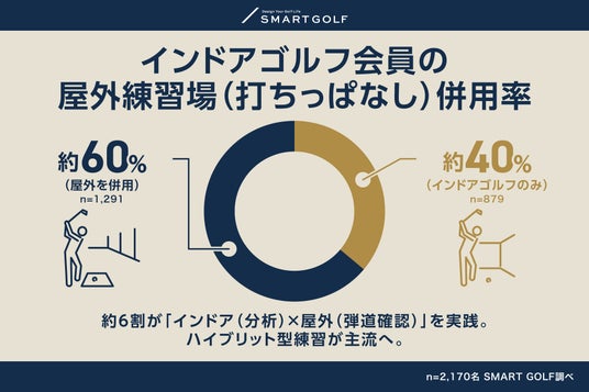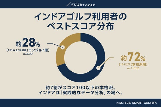- 利用者の約7割(71.5%)が、ベストスコア100以下の「本格層」- インドア会員の約6割(59.5%)が、現在も「屋外練習場(打ちっぱなし)」を併用している