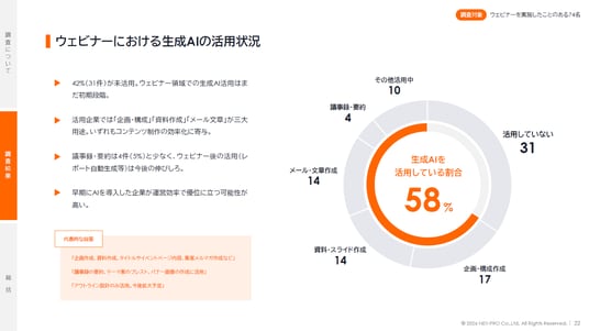 本調査では、ウェビナーの活用状況、運用の実態、成果創出に向けた取り組みについて明らかにしています。