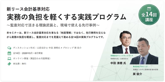 プロシップでは、こうした課題に対応するため、単なる制度解説にとどまらず、先行事例を交えながら実務負担をいかに軽減し、監査対応までを見据えて判断・整理を進めていくかに焦点を当てた、実践的な支援プログラムを提供しています。