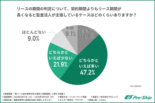 回答結果から、約6割の企業が「多い」「どちらかといえば多い」と回答しており、監査法人からリース期間の長期化(延長オプションの行使)を指摘されるケースが少なくない実態が明らかになりました。