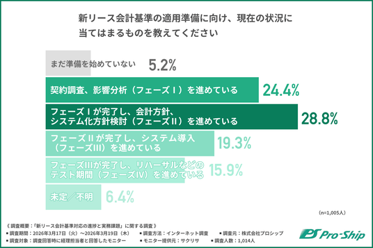 そこで今回、株式会社プロシップ(https://www.proship.co.jp/)は、経理担当者を対象に「新リース会計基準対応の進捗と実務課題」に関する定点アンケート調査を実施しました。適用時期から逆算した際のスケジュールの遅れや、監査対応・契約管理においてどのような壁に直面し、足踏みをしているのかをより具体的に調査しました。