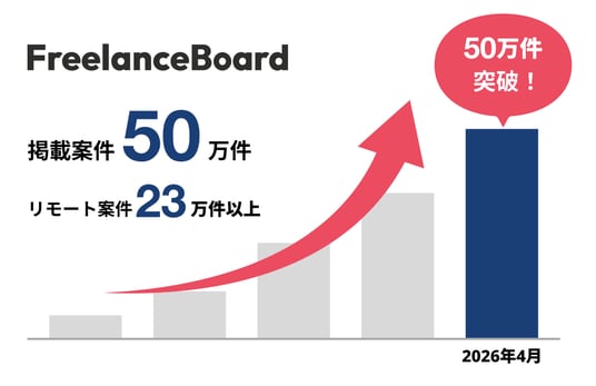 INSTANTROOM株式会社(本社:東京都渋谷区、代表取締役:曽根弘介)が運営する、フリーランスエンジニア・ITフリーランスの案件検索サイト「フリーランスボード(https://freelance-board.com)」において案件掲載数が50万件を、リモートワーク案件数が23万件をそれぞれ突破したことをお知らせいたします。