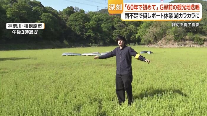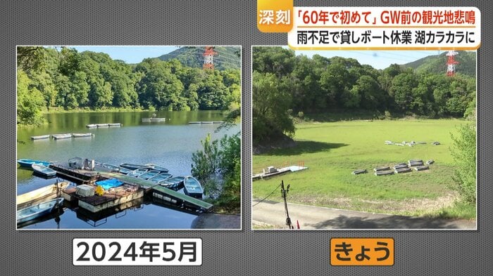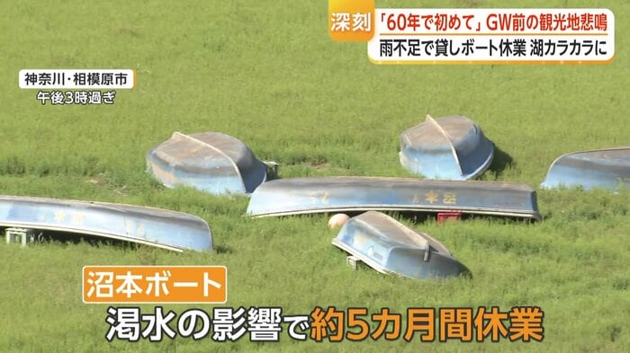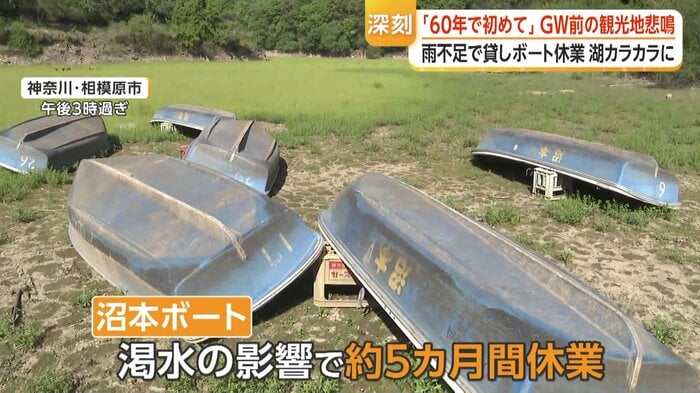 ブラックバス釣りなどで利用される貸しボート店は、渇水の影響でおよそ5カ月間休業しているという。