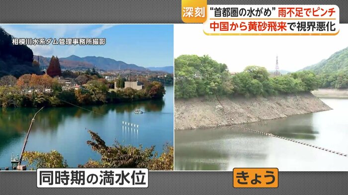 日本列島の広い範囲で21日、中国などから飛来した黄砂が観測された。また、関東の水がめでは水不足でゴールデンウィークを目前に異変が起きている。