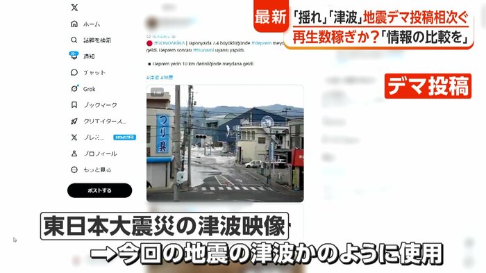 この投稿のリプライ欄には「なぜウソをつくのか、これはきょうの出来事ではない」という指摘がある一方、「心が痛みます。最小限の被害と迅速な回復を願っています。どうかご無事で、日本」「日本人がどうやって津波に繰り返し襲われながら乗り越えているのか、本当に理解できません」など、事実と誤認したとみられるコメントもあった。