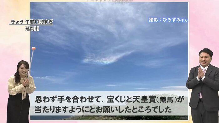 続いては視聴者からの写真を紹介する「みやそら通信」は、県内で観測された美しい「彩雲(さいうん)」の写真が寄せられました。