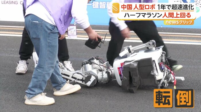 中国・北京で19日に行われたのは、人型ロボットによるハーフマラソン大会。多くのロボットが驚異のスピードで、横を走る人間のランナーを抜き去っていた。