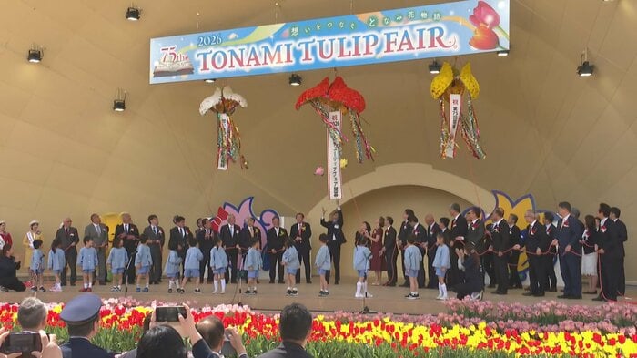 となみチューリップフェアが22日に開幕し、赤や黄色などの350万本のチューリップが来場者を出迎えています。