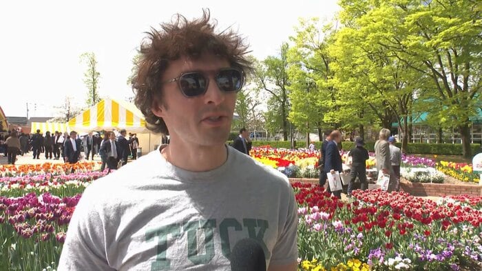 「多様なチューリップが見られて、とても素晴らしい。この旅行で日本のいろんなことを学びたい」