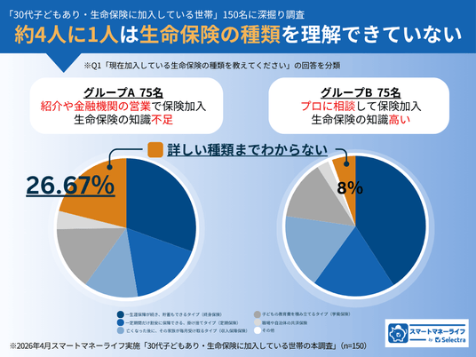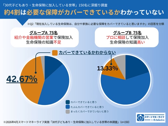 セレクトラ・ジャパン株式会社(東京都渋谷区、代表取締役:グザビエ・ピノン)が運営する、お金の情報メディア「スマートマネーライフ(https://smart-moneylife.jp)」は、30代子育て世帯894名を対象に生命保険の実態調査を実施しました。