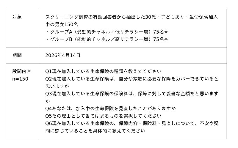 ここまでで、加入チャネルの差が、保険リテラシーの差につながっていることがわかりました。スマートマネーライフ編集部は、加入チャネル別に分けた2つグループの中から、それぞれ75名ずつ抽出し、計150名にさらなる調査を実施しました。