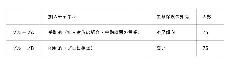 ●グループB(能動的チャネル/生命保険の知識高い)75名