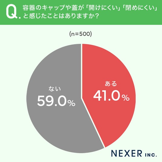 ■41.0%が、容器のキャップや蓋が「開けにくい」「閉めにくい」と「感じたことがある」と回答