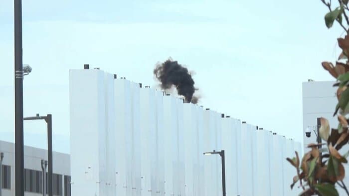 この自治体は税制面で優遇しているため、町はデータセンターだらけ。取材中には、真っ黒な煙を吹き出す施設も目撃した。