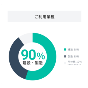 建設・製造業でのご利用が90%を占めています。その他への広がりも顕著。利用業種の90%を建設・製造業が占めており、建築・土木から工場、プラントまで、過酷な環境下での安全管理のスタンダードとして定着しつつあります。