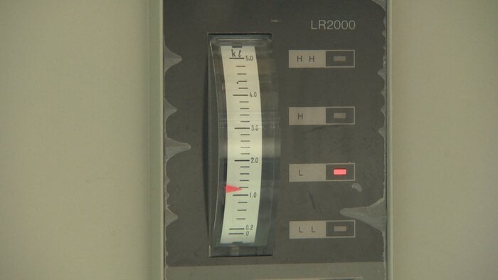 通常、タンクの残量が1500リットルを切ると業者へ補充を依頼している。最大5000リットルが入るタンクだが、現在の残量は約1200リットル。すでに補充が必要な水準を下回っている状況だ。