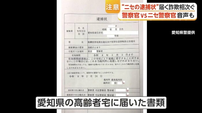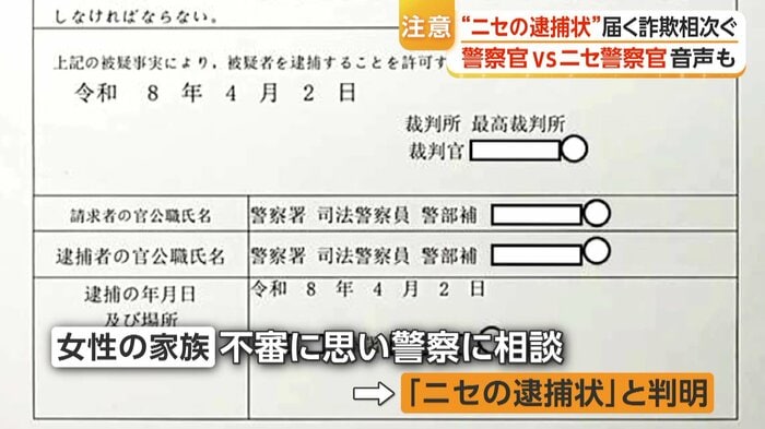 警察を装う詐欺が急増する中、自宅に「ニセの逮捕状」が郵送される新たな手口が確認された。