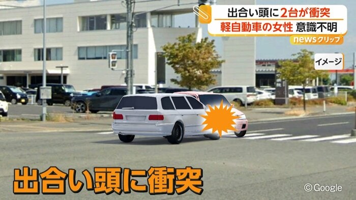 山形市の県道で20日、薬局の敷地から道路に出た軽自動車と県道を直進してきたライトバンが出合い頭に衝突する事故が発生した。軽自動車を運転していた66歳の女性が重体となっている。