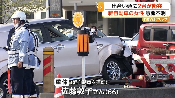 この事故で、軽自動車を運転していた66歳の女性が重体となっている。