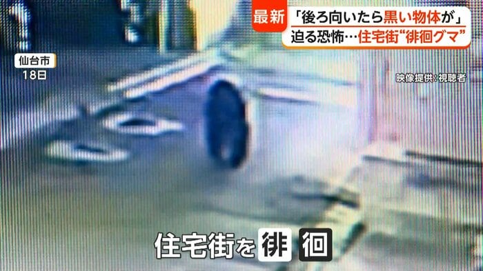 18日、仙台市で夜の住宅街を徘徊するクマの姿が防犯カメラに捉えられた。
