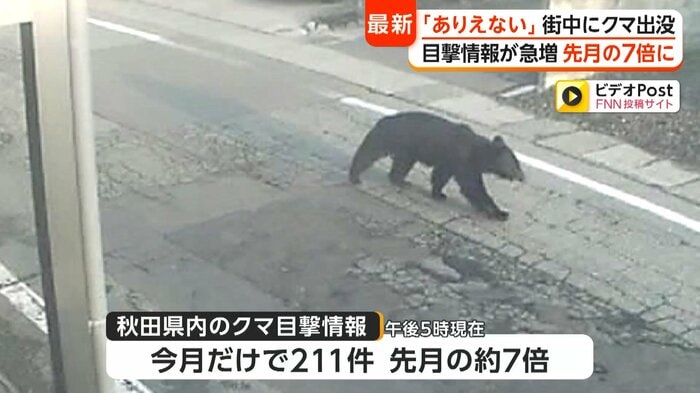 秋田県内ではクマの目撃情報が4月だけですでに211件(22日午後5時現在)にのぼり、3月の約7倍にのぼっている。