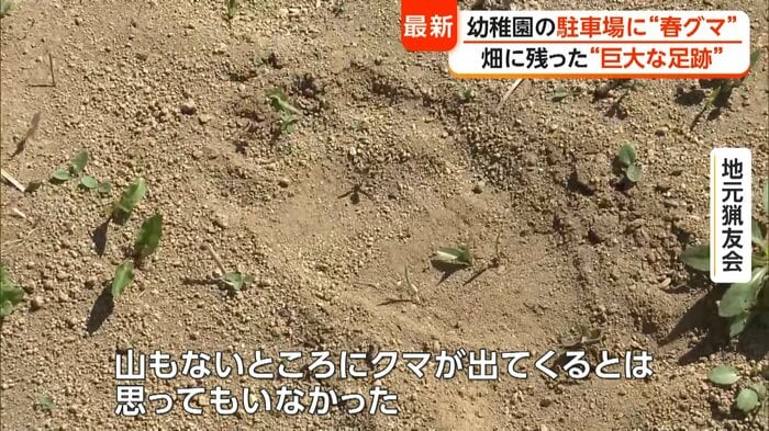 近くの畑には、クマの足跡とみられる痕跡もあった。