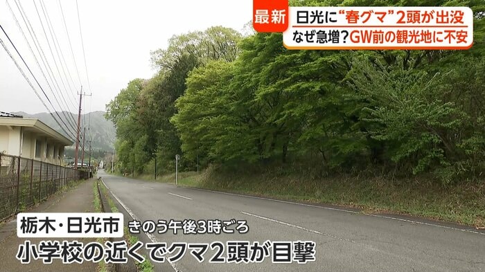 日光市では21日午後3時頃、小学校の近くで2頭のクマが目撃された。