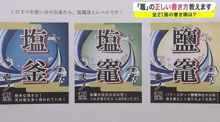 難しい文字を強制的に書いてくださいというのは難しい状況もある。塩竃の竈の字は通常みなさんがよく書かれる『釜』の字と文字の意味が違う。釜の字は鍋釜の『釜』を指すもの。我々塩竃市の『竈』の方は、海水・塩水を竈で炊いて塩を精製したという故事から、竈の字は火をくべる方の竈の意味を指す