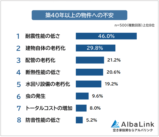 築40年以上の物件への不安1位は「耐震性能の低さ」