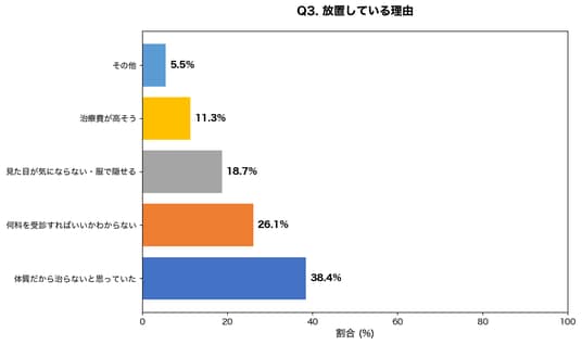 【調査結果】放置理由の1位は「体質だから治らないと思っていた」が38.4%