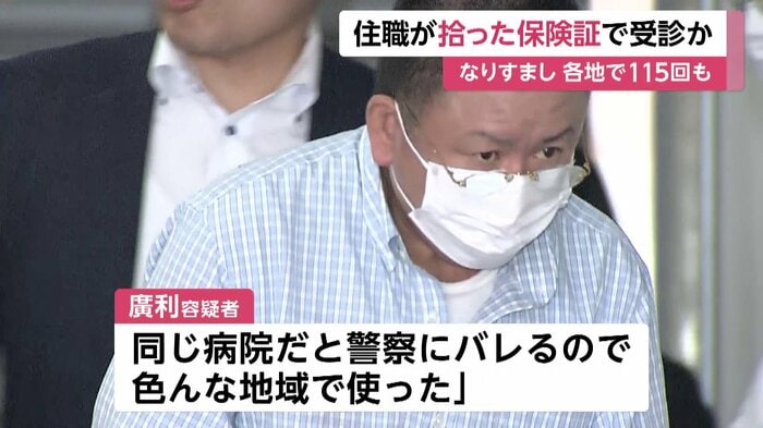 廣利容疑者は、「保険証がなく拾った保険証を使った。同じ病院だと警察にバレるので色んな地域で使った」と容疑を認めているという。