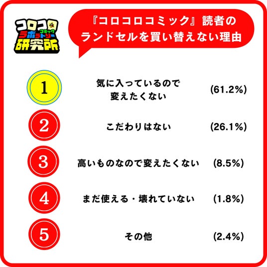 『コロコロコミック』では今回、小学生1年生から6年生までの『コロコロコミック』読者725人を対象に「ランドセル」「文房具」に関するアンケート調査を実施。ランドセルに関しては買い替え意向や体感的な重さの有無、文房具に関しては選び基準・流行のアイテムなどについて調査した結果を、『コロコロコミック研究所』所長・小林浩一の分析とともに紹介します。