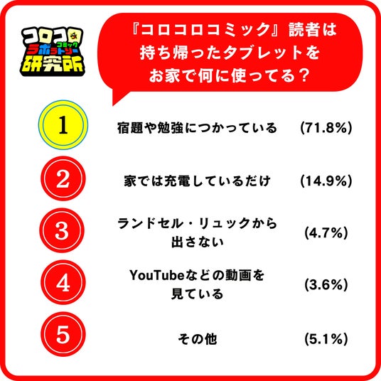 株式会社小学館は、男子小学生向けマンガ雑誌『月刊コロコロコミック』(以下『コロコロコミック』)で1977年の創刊以来続けている読者アンケートのデータをもとに、男子小学生のリアルを定期レポートおよび分析する新プロジェクト『コロコロコミック研究所』を発足しました。本プロジェクトにより、読者である男子小学生を巻き込みながら、コロコロ流化学反応を引き起こす様々な楽しく新しい企画を提案・実施して参ります。