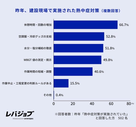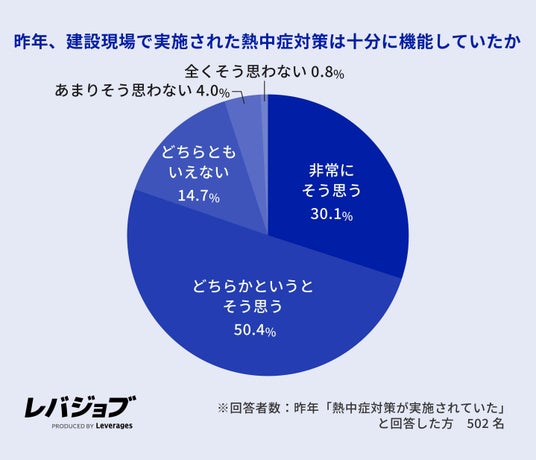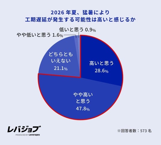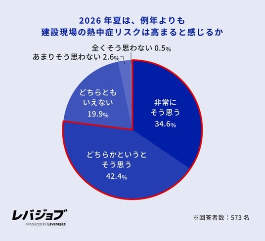 レバレジーズ株式会社が運営するエッセンシャルワーカー向けキャリア支援サービス「レバジョブ」(https://levjob.jp/)は、施工管理職573名を対象に、2026年夏の熱中症対策に関する意識調査を実施しました。