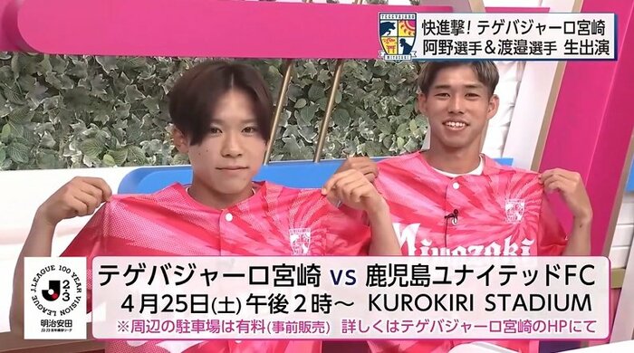Jリーグの特別大会「J2・J3百年構想リーグ」でグループ首位を独走するテゲバジャーロ宮崎。開幕から7連勝を飾るなど圧倒的な強さを見せるチームの裏側には、過酷なトレーニングと選手間の深い信頼関係があった。阿野選手と渡邉選手に好調の要因と次節の「南九州ダービー」への意気込みを聞いた。