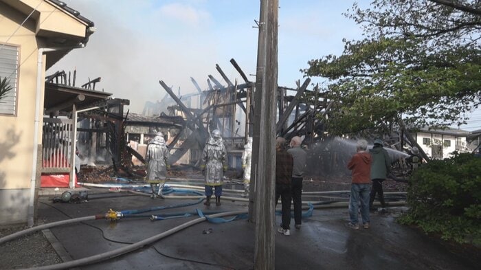 また、出火当時は風が強く、火の粉が約60メートル先の別の住宅や会社にも飛び、置いてある木材にも燃え移りましたが、消防がすぐに発見して消し止めたということです。