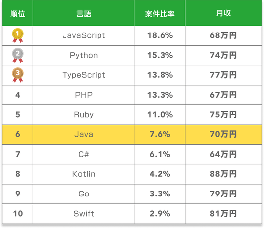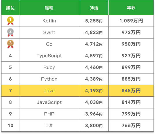 ・Java案件の平均年収845万円