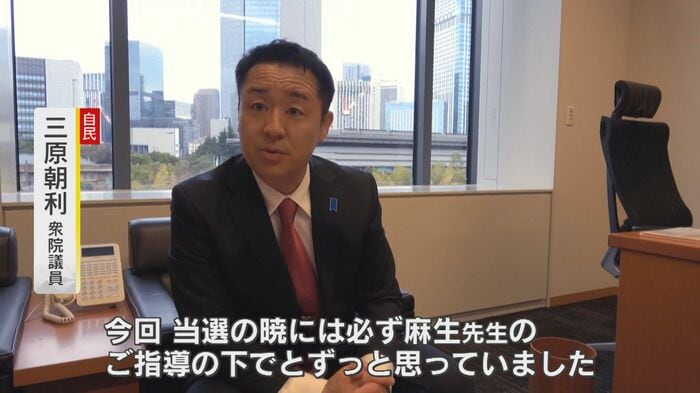 福岡9区で出馬し、比例で復活当選した新人の三原朝利・衆議院議員もその1人だ。「いろんな形でお力添え頂きましたし、今回、当選させて頂いた暁には、必ず麻生先生のご指導の下でと、ずっと思っていました」。