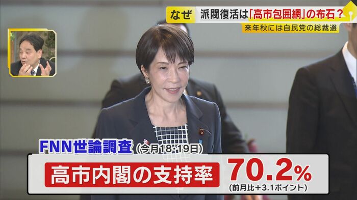 一方、最新のFNN世論調査では総理の就任半年が経過した高市内閣の支持率は、70%を超えている。2027年秋には自民党の総裁選を控えているが、これだけ選挙に強くて支持率も高い状態だったら無投票の再選となってもおかしくもない。そうしたなかでの派閥復活の動きとなると、これは総裁選に向けた“高市包囲網”のサインとも見えるのだが…。
