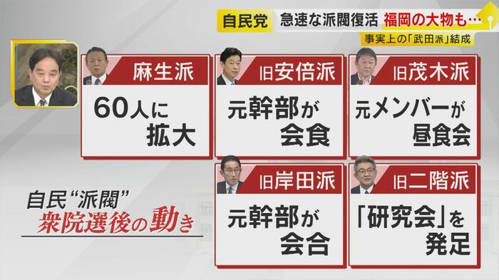 麻生派、旧安倍派、旧茂木派、旧岸田派、そして事実上の武田派、それぞれがはっきり動き始めている。“派閥復活”ともいえるがジャーナリストの鈴木哲夫氏はこの動きについて―。