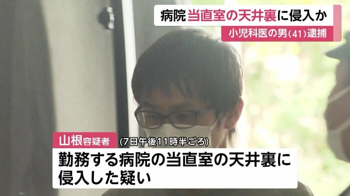 病院の当直室の天井裏に侵入した疑いで41歳の医師の男が逮捕された。