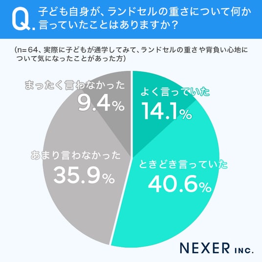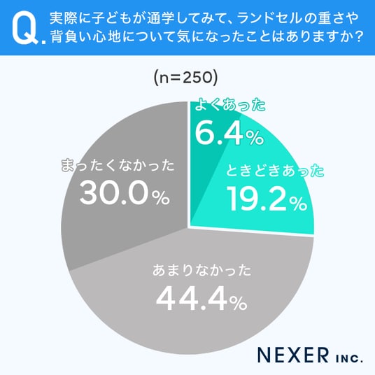 続いて、実際に子どもが通学してみて、ランドセルの重さや背負い心地について気になったことがあるか聞いてみました。