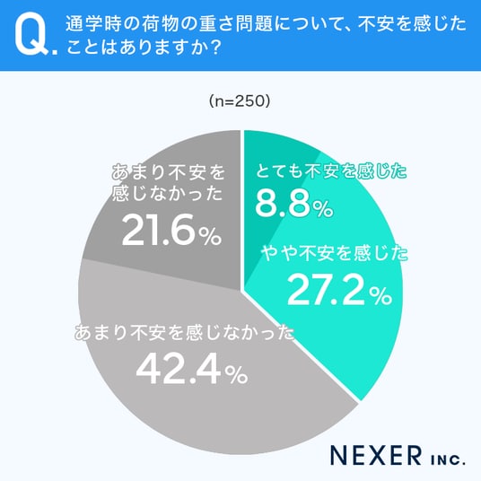■36.0%が、通学時の荷物の重さ問題について「不安を感じたことがある」と回答