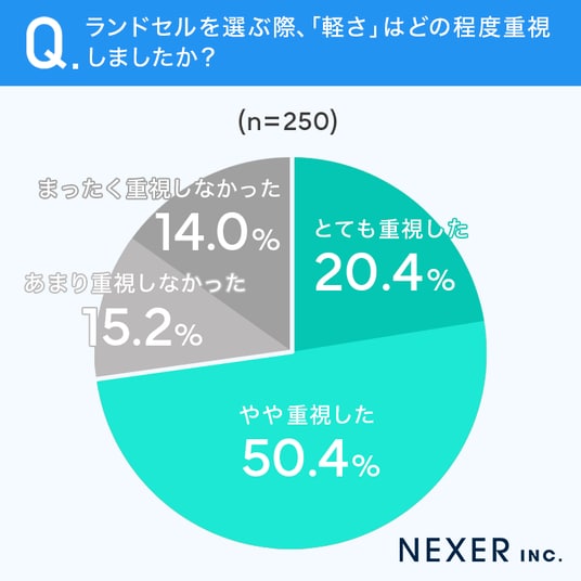 まず、ランドセルを選ぶ際に「軽さ」をどの程度重視したか聞いてみました。
