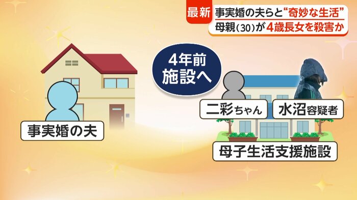 水沼容疑者は4年前、事実婚の夫から受けたDV被害をきっかけに娘を連れて施設に避難。