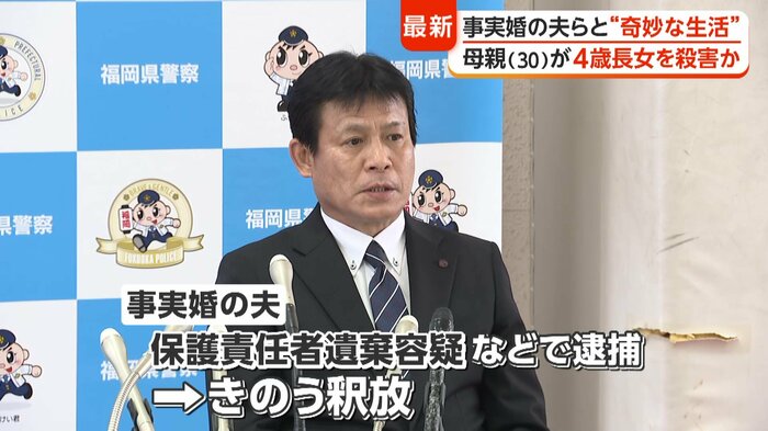 事実婚の夫は、保護責任者遺棄容疑などで警察に逮捕されたが23日に釈放。