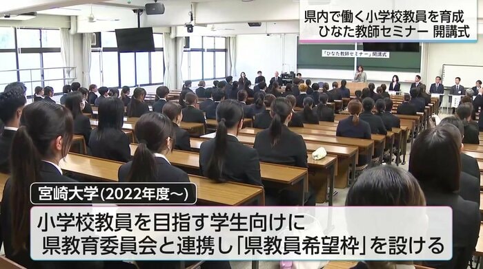 こうした中、宮崎大学では県内で活躍する小学校教員を育成する「ひなた教師セミナー」の開講式が行われた。