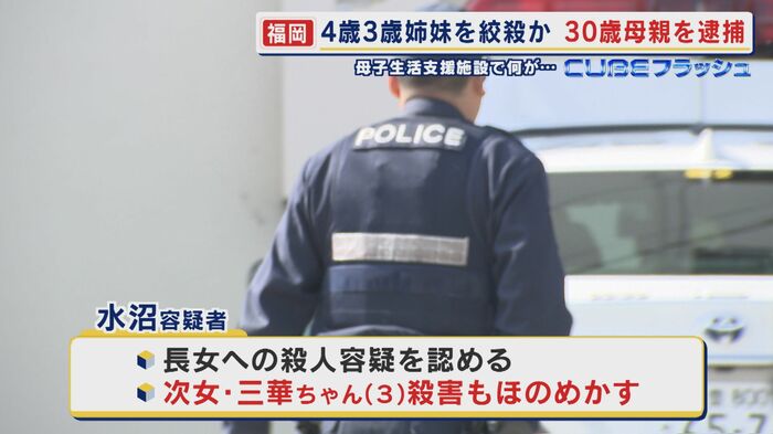 水沼容疑者は、長女の二彩ちゃん殺害容疑を認め、次女の三華ちゃんの殺害についても関与をほのめかす供述をしている。姉妹が寝ているところを襲って殺害したと見られている。