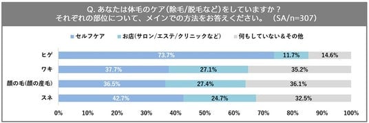 意外な新事実!王道ともいえるヒゲ・ワキ・スネに加え、最も体毛が気になる部位TOP3に「顔の毛(顔の産毛)」がランクイン